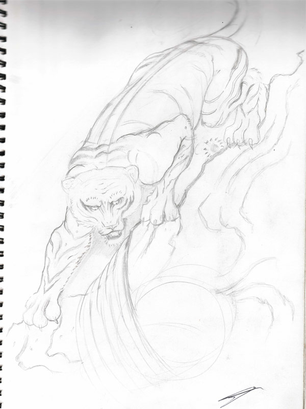 Photo # 1 Depicts the preliminary sketch of the Japanese Tiger tattoo design that Kelly wanted to have tattooed on her left side.